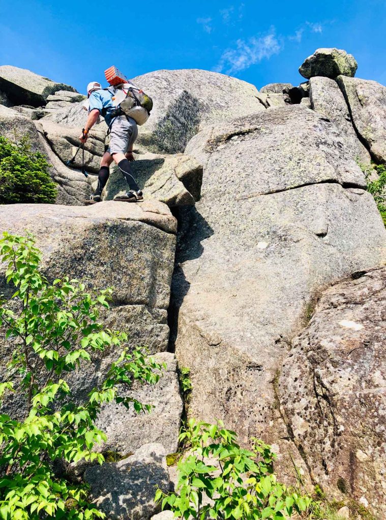 With the summit of Basin behind us, we had only one one more peak standing between us and our first opportunity to exit the range back down to the comfort of our hammocks. Choreographing the mini-bouldering moves required to ascend the west face of Saddleback Mt. slowed our pace to a crawl, but it doesn’t mean it wasn’t fun playing on what amounted to an adult-sized jungle gym under the sunniest of afternoon skies.